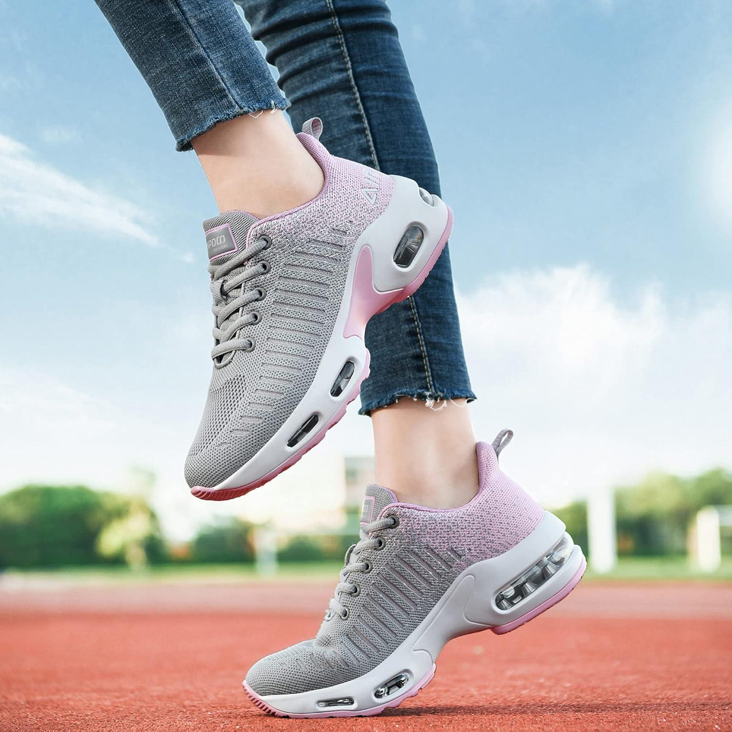 RomenSi Womens Tennis Athletic Running Shoes Fashion Sneakers Breathable Sports Gym Walking Shoes (US5.5-11)(Greypink35)